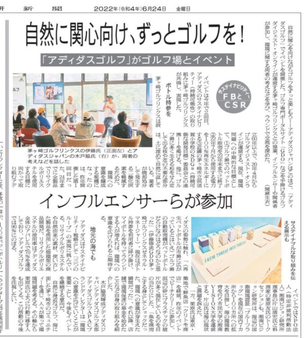 去年に続き、今年も弊社 湘南WorK.がコーデネートさせていただいたアディダスゴルフ様×茅ヶ崎ゴルフリンクス様のコラボSDGsイベントが繊研新聞に記事掲載されました。